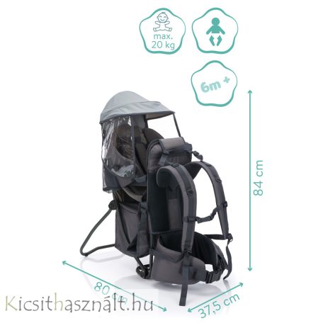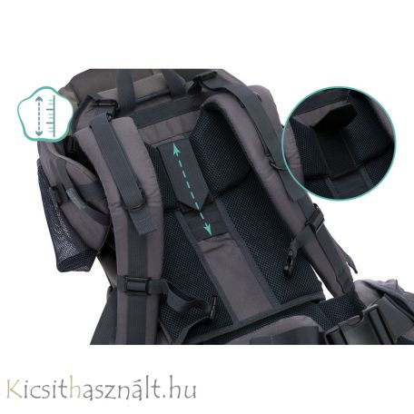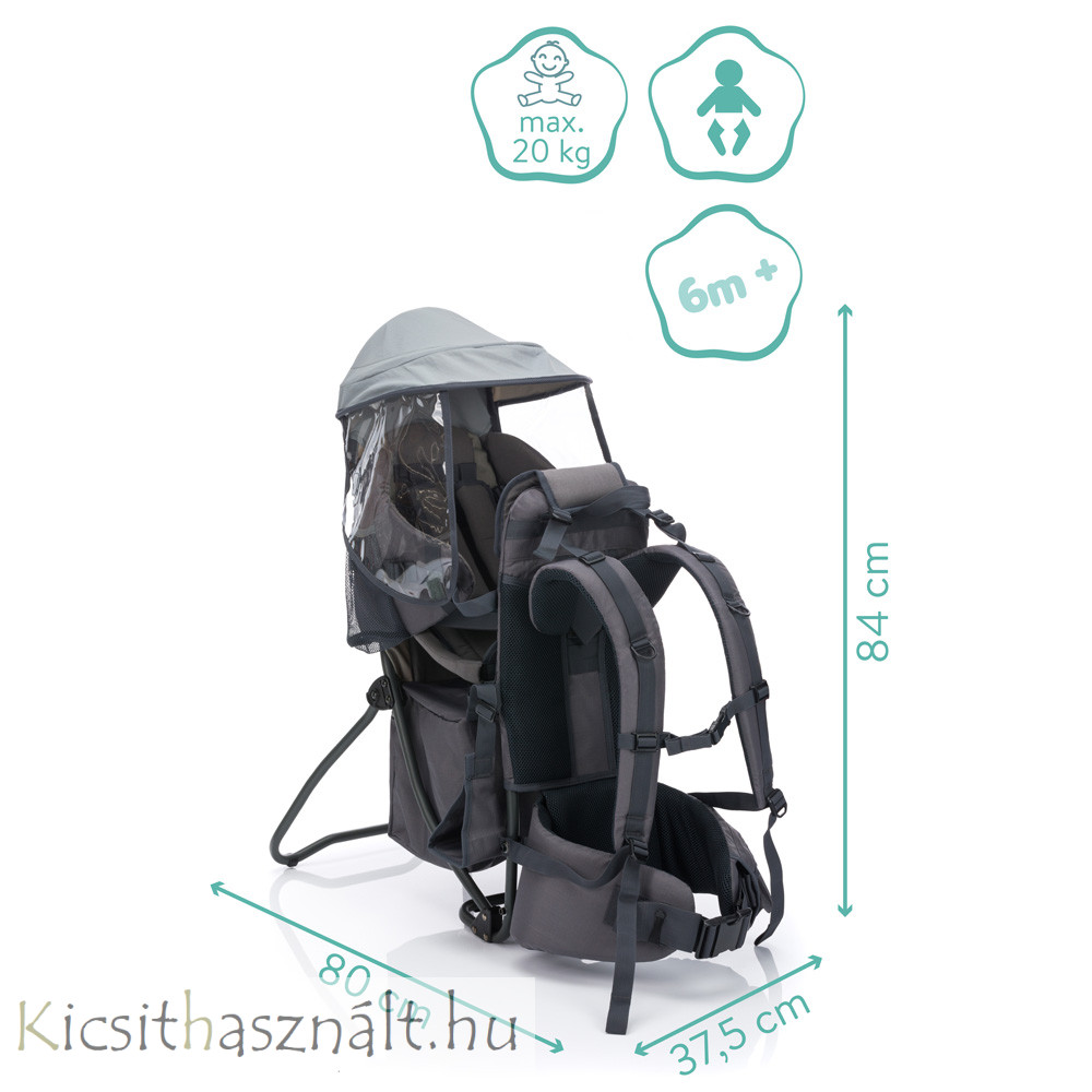 A termék jellemzői: • Széles csípő- és vállpántok légszellőző rendszerrel az optimális párnázásért • Sokoldalúan állítható vállpánt, bármilyen mérethez illeszkedik • Tágas rekesz a ruhák és egyebek számára • Könnyű alumínium keret a könnyű hordozhatóság érdekében • Nagy napfény- és esővédővel (HIÁNYZIK) • Lábpántok • Jól párnázott, állítható biztonsági övek védik gyermekét a kieséstől • Optimálisan ergonomikus forma a kényelmes hordozáshoz • Maximum 18 kg súlyig használható